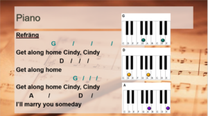 Under hösten har vi på mellanstadiet spelat låtar med 3-5 ackord. En av låtarna ser du här nedan. Vi tackar bandet Happy Heartaches för inspirationen.